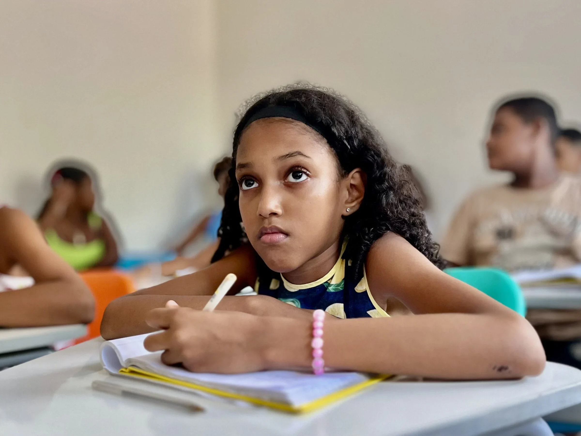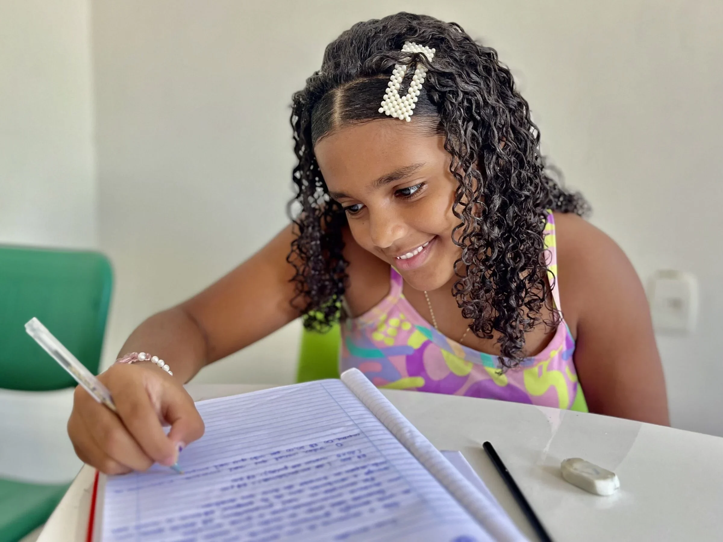 Nos dois prédios do Estrela da Favela, as professoras ensinam mais de 150 crianças de 5 a 17 anos todos os dias. Elas recebem aulas de reforço em matérias que são ensinadas muito abaixo da média nas escolas públicas. As crianças recebem aulas de matemática, idiomas, geografia, história e inglês. Além das aulas regulares, também damos muita atenção às habilidades para a vida e às habilidades sociais. Há conversas diárias com as crianças e/ou suas mães, nas quais são discutidas questões e problemas da vida.