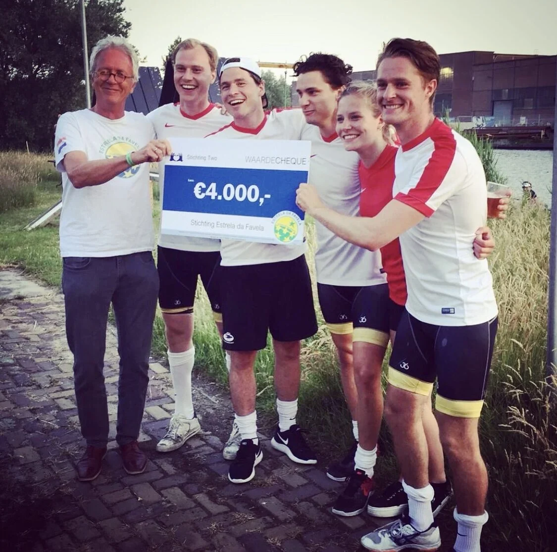 Você também pode organizar ações para o Estrela da Favela. Por exemplo, Mark Koelen pedalou de Olympia, na Grécia, até o Rio de Janeiro, passando por Los Angeles. Nossos fãs também organizaram um passeio de saveiros em Amsterdã, correram maratonas e até remaram cem quilômetros! Atividades como essas garantem o progresso do Estrela da Favela.